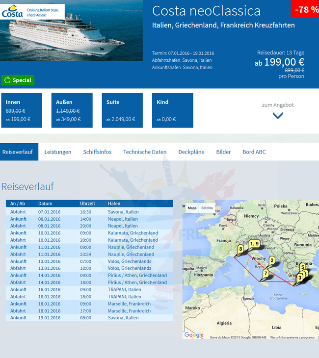 UPD: Цена (Bella и Fantastica доступны по одной цене):Labiann писав:8 days Mediterranean Full Board cruise for only €149 per person or €19 per night.