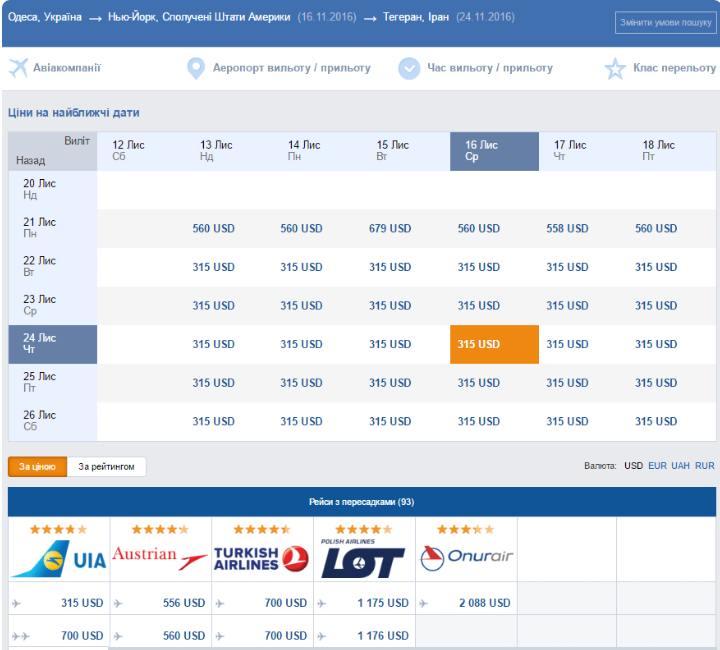 Деякі сайти продають ці квитки по 307 доларів (7767 грн.) з регіонів і по 316 доларів (7983 грн.) з Києва.
