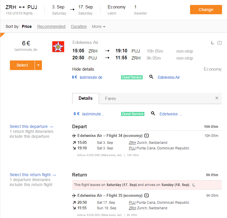 Я через edreams дошёл до шага внесения банковских реквизитов карты - показывало всё те же 29 евро. А когда цена меняется?Scorpio писав: а при переходе на шаг оплаты с Вас снимут еще 10-15 евро за обрабоку платежа как в bravofly. Итальянские и испанские сайты такое практикуют - отделяют сервис/чардж фи на самый конец этапов бронирования, чтобы при поиске высвечивалась стоимость ниже, чем у других поисковиков и таким образом их вариант будет на первой позиции.