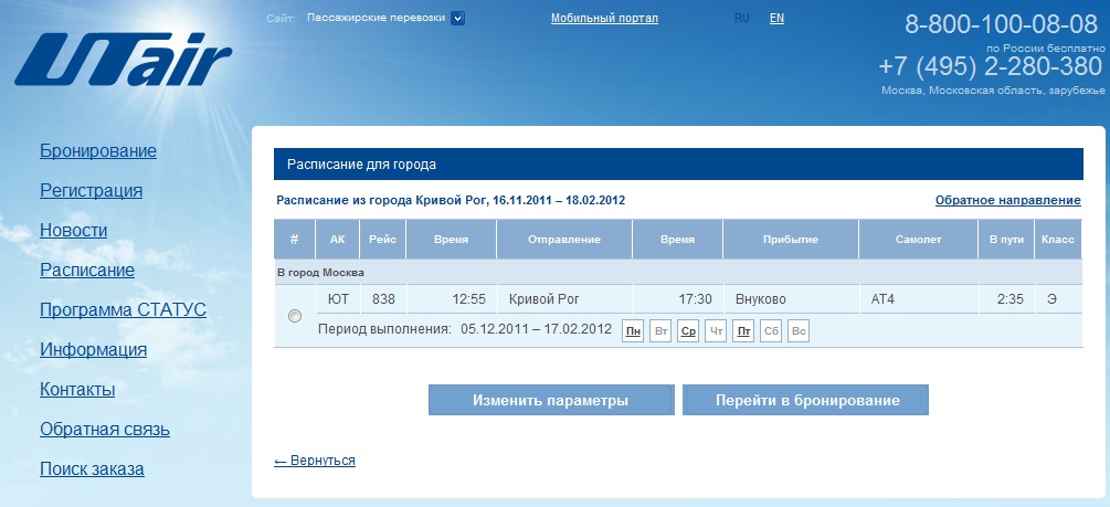 QU-505 Kiev UT AIR-UKR 06:40 08:10 From 01.12.11 to 24.03.12