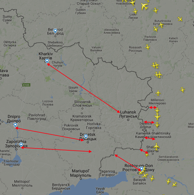 .Rel писав:А я больше удивляюсь расстояниям. С другой стороны летают в 15-25 км и ничего, в т.ч. постоянно пролетают A380 и B777 из Эмиратов в Штаты, Канаду. От зоны АТО до аэропорта Ростов каких-то 50 км, при этом от Харькова до границы АТО 300 км, от Депропетровска больше 200.Olek писав:Только 3 года прошло, а тут вдруг европейцы надумали. Странно все это.