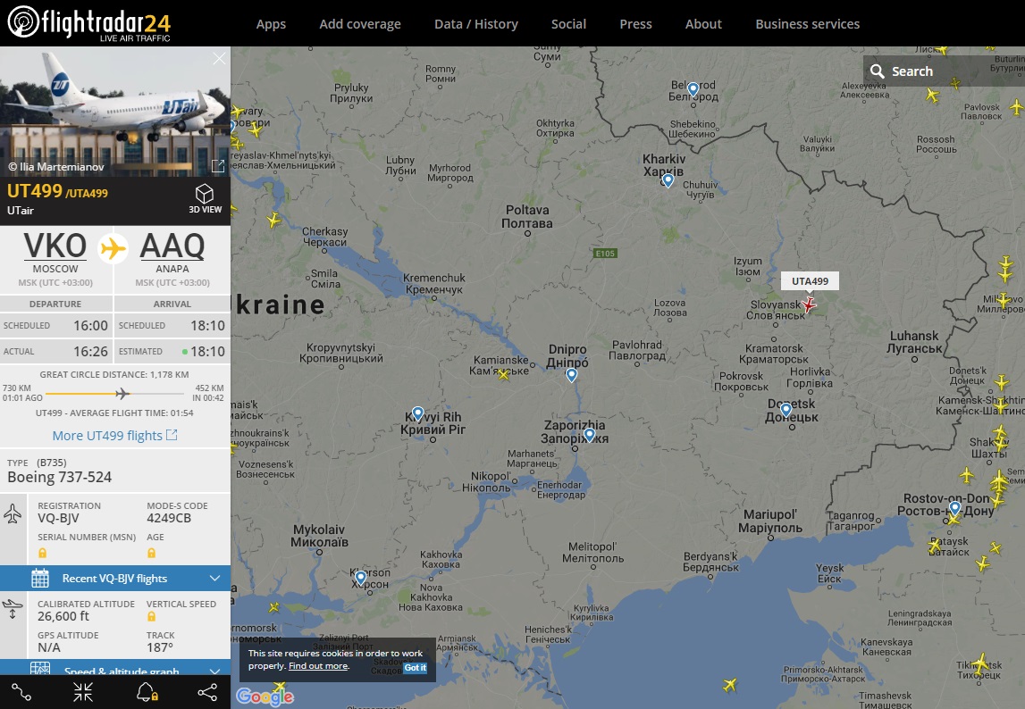 вже 100 раз писали - це глюк. Перевіряйте на інших сайтах: https://nl.flightaware.com/live/flight/UTA499