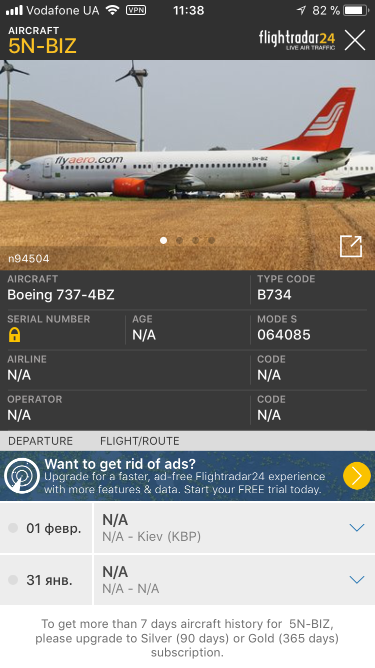 Boeing 737 -4B7 24558 1845 5N-BIZ AeroContractors ferried 31jan-01feb18 …-DJE-TUN-KBP on delivery to? ex N436US