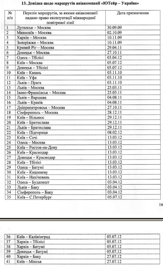 Эта заявка была удовлетворена еще 29 декабря 2011 года. Еще у Ютэйр Украина в активах Киев-Братислава. Они ее тоже получили, но летать не начали. А еще Львов-Варшава/Краков/Прага и много другогоXII писав:OUT, значит ли это, что ГАА удовлетворила только одну вашу заявку? И можно узнать, чем вы руководствовались, выбирая Вильнюс и предпочитая его в первую очередь Риге, да и Таллину тоже? Конкуренции с МАУ опасаетесь меньше, чем конкуренции с Балтиками и эстонцами?