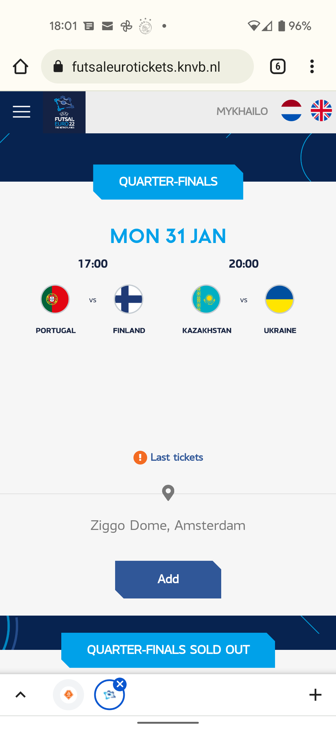 З'явилися в продажу квитки на чвертьфінал футзального Євро: https://futsaleurotickets.knvb.nl/