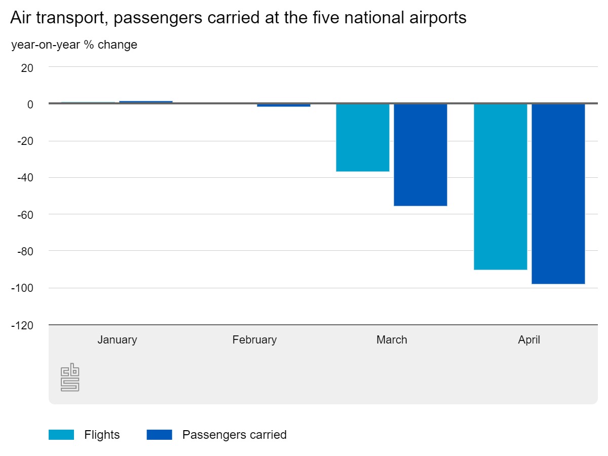 National airports handled 98 percent fewer passengers in April