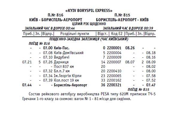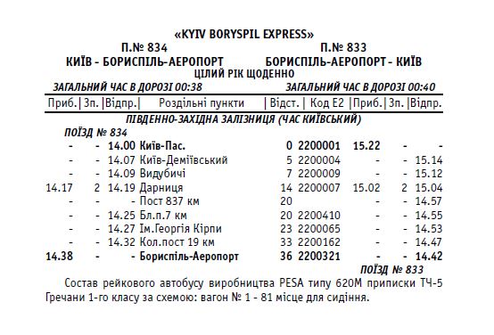 Железнодорожное сообщение между Киевом и а/п Борисполь