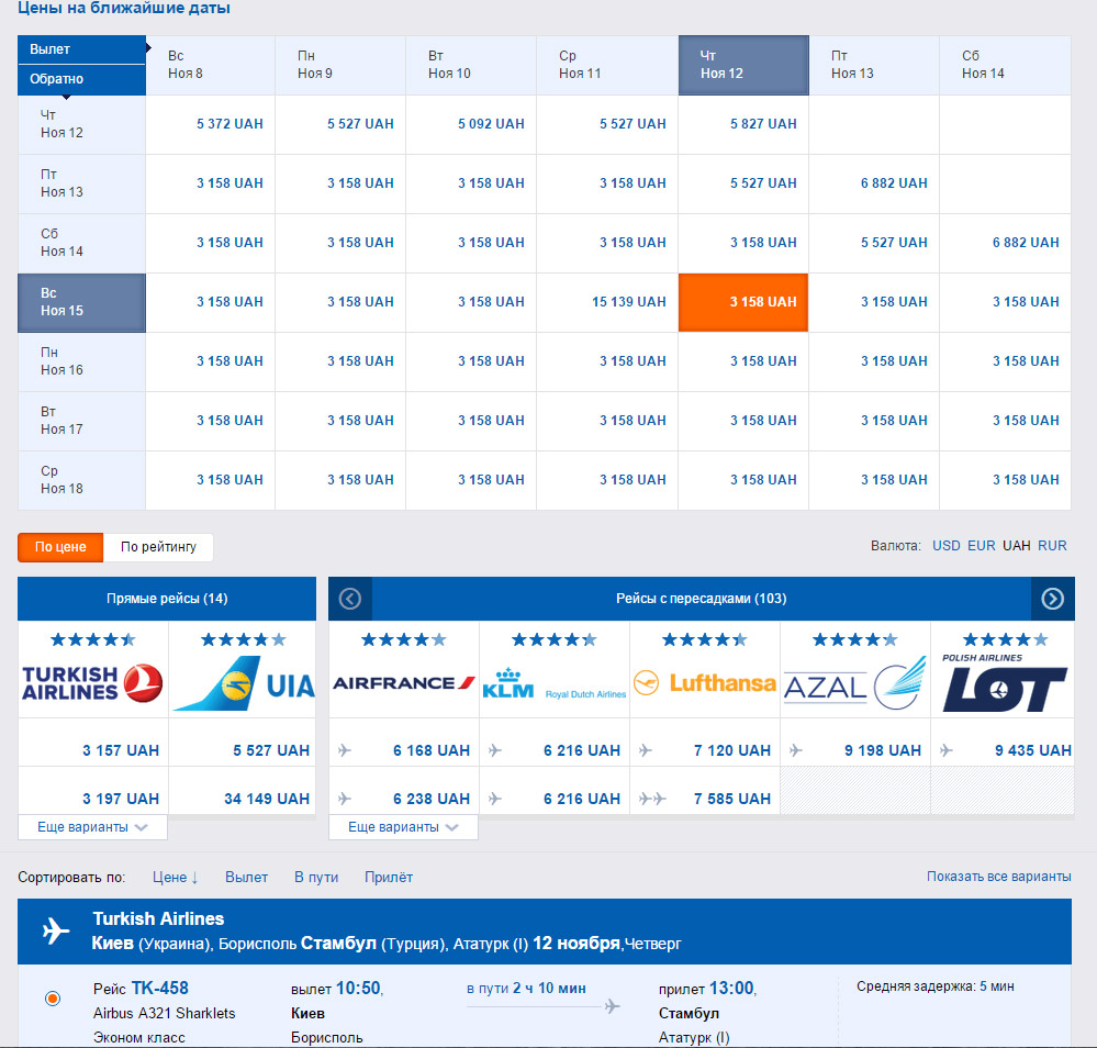 Доступні дати для подорожі з листопада до початку березня 2016 року. Найдешевші авіаквитки будуть у кінці лютого – на початку березня, у січні-лютому переліт Київ-Мюнхен на кілька євро дорожчий.