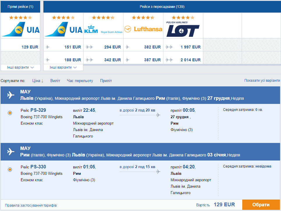 Львів – Рим – Львів на Новий Рік за 129 євро:
