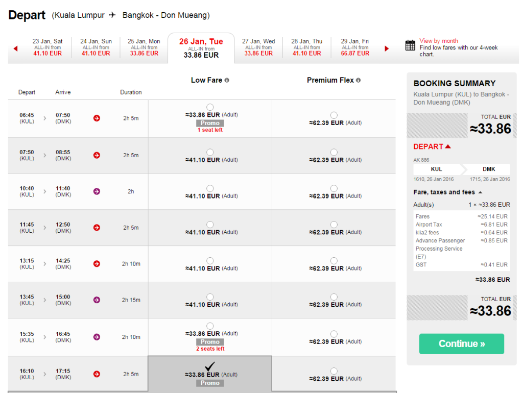 25, 26 або 27 січня Куала-Лумпур – Бангкок 34 € AirAsia