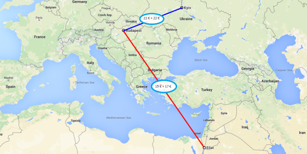 цена на перелет в Израиль из Киева через Будапешт 76 € (1 939 грн) туда-обратно!