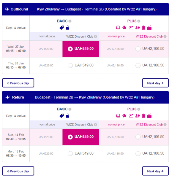 20 січня Київ – Будапешт 629 грн (26 €) WizzAir