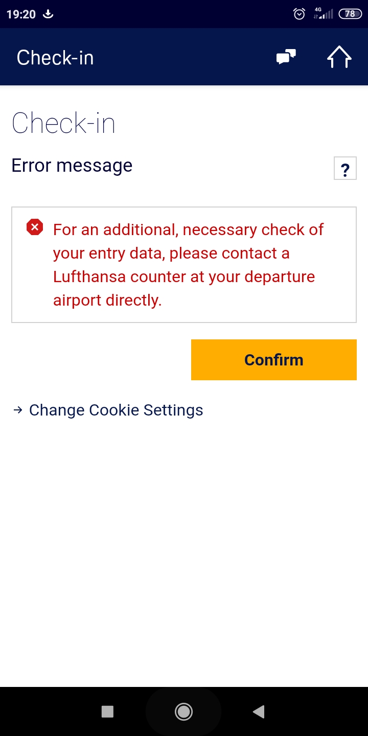 Не давало зачекінитись тому що метою візиту був обраний "туризм" (інше нічого не підходило, хоча і туризм не підходив).