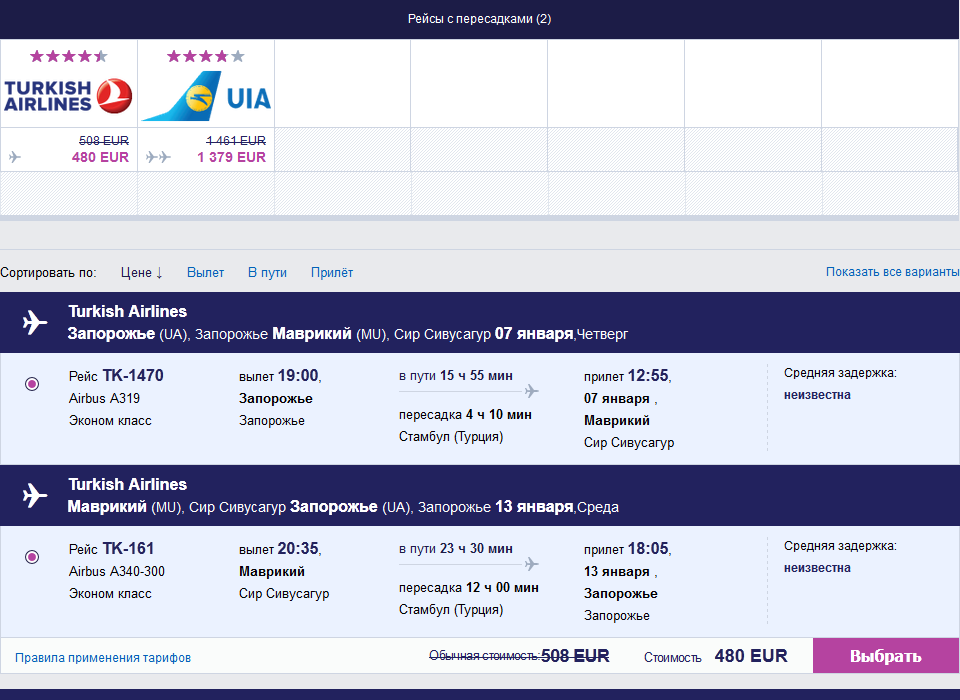 Приобретаем билеты на Tickets.ua, перевозчик — МАУ.