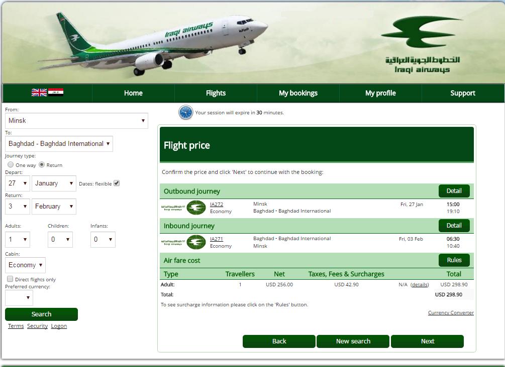 В агрегаторах нет, но можно купить на сайте авиакомпании. Рейсы прямые!!!. На ближайшую пятницу в Багдад самолёт полностью распродан:
