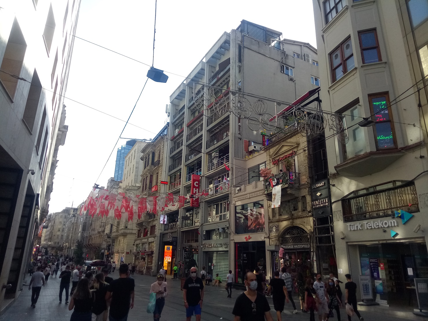 Сейчас в Стамбуле. В туристических районах через одно кафе работают в обычном режиме, а все остальные только на вынос. Кофейни работают на вынос. Музеи, мечети, торговые центры работают в обычном режиме. Людей полно. Процентов 10 ходят без масок или со спущенными масками