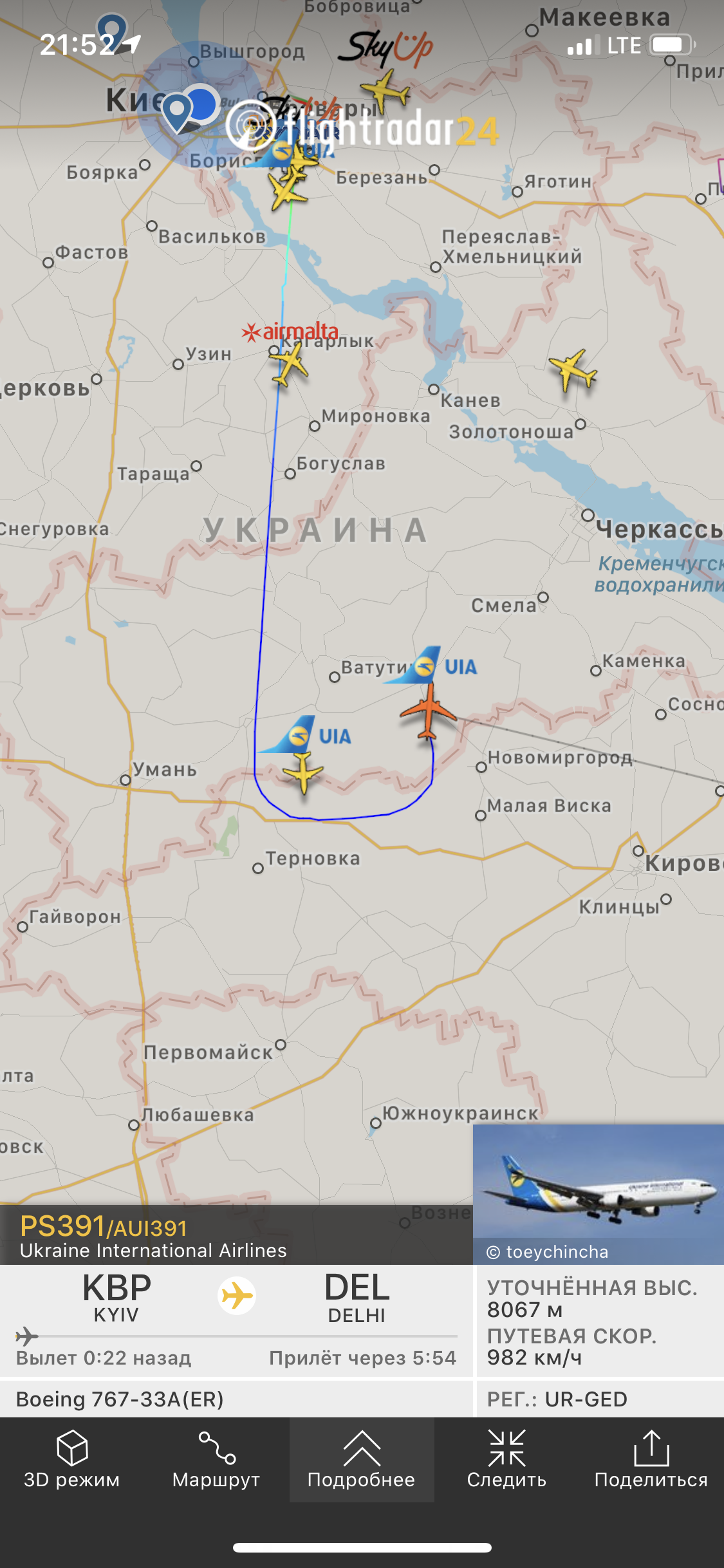 Что то с UR-GED пошло не так, возвращается в Борисполь