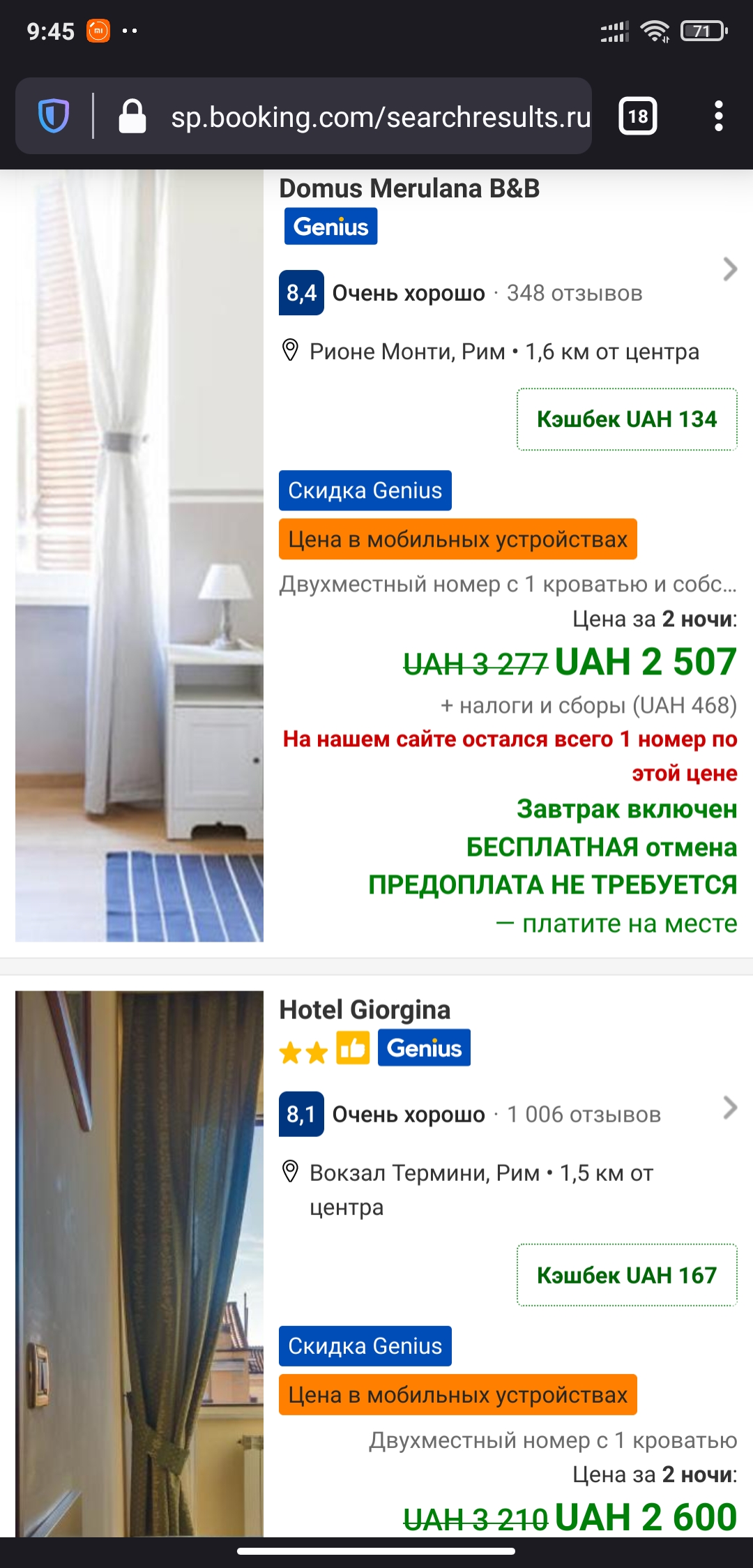 Лучше всего бронировать с телефона через браузер по ссылке от Мастеркард. Тогда работает и цена для моб. устройств, и кешбек заходит. С компьютера или через моб приложение только одно из двух.