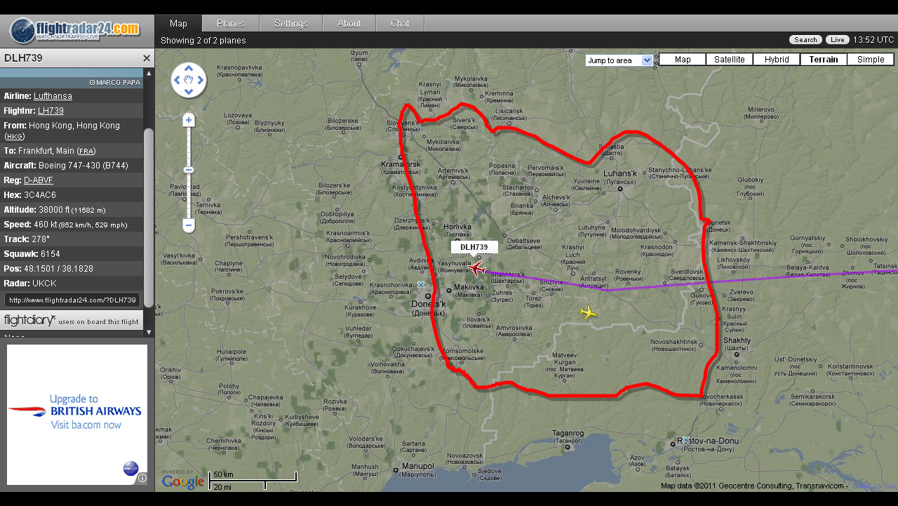 Когда появится там радар, это явно будет видно. Для этого самолет должен быть виден под Днепропетровском или между Х и Д.