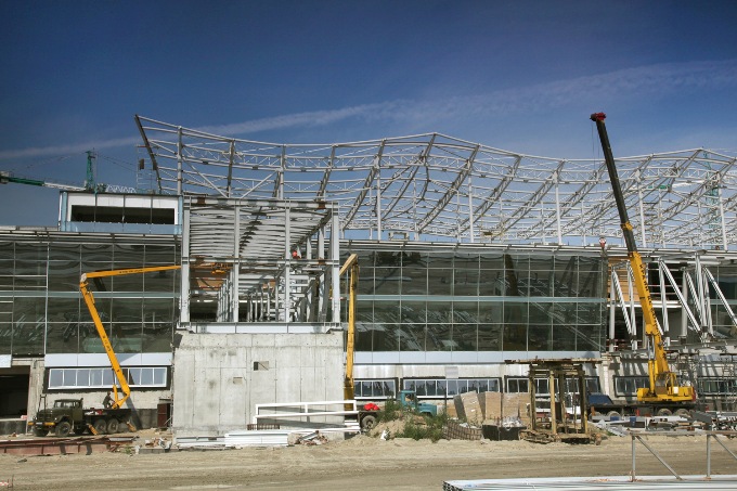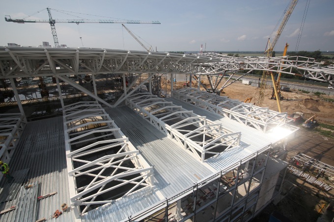 Строительство терминального комплекса началось в марте 2010-го и ведется на основании госпрограммы подготовки к Евро-2012.