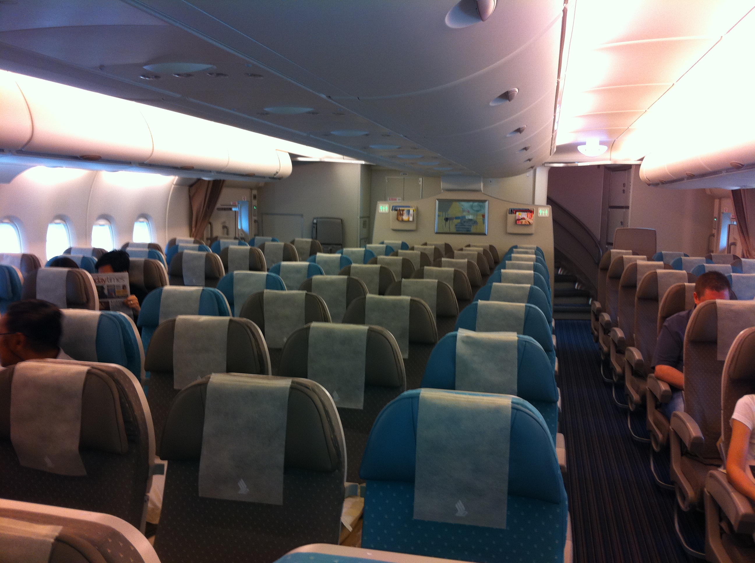 На плече Сингапур-Гонгконг летел мой таргет номер 2 - А380-800 в конфигурации, где вся верхняя палуба отдана под бизнес-класс. Изначально был заявлен борт с конфигурацией, которая предусматривает часть эконома на верхней палубе, но потом ее поменяли. Эх, а я так хотел полетать на второй. Ну, ничего, есть цель, будем стремиться)). По сравнению с А333 уресла шире. Все остальное практически то же самое)) Ну, кроме размеров. Загрузка около 75%, я нашел себе свободный ряд из трех кресел и предвкушал хороший сон, но не тут-то было. В моей части салона летело человек 30 сингапурских пятиклассников. Думаю, рассказывать о тишине и покое дальше не имело смысла. Беруши не помогли)))