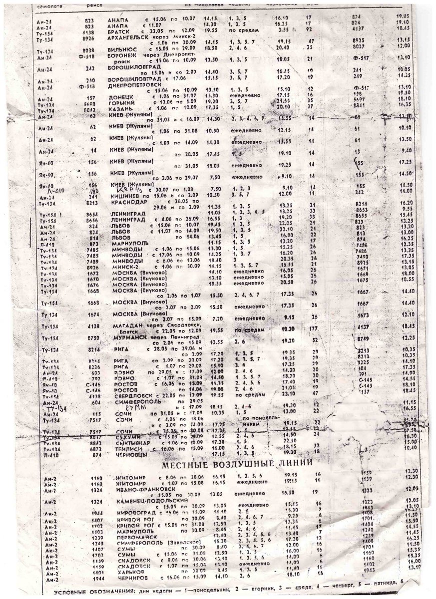 Осеннее расписание аэропорта "Сумы" за 1988 год (фото взято из http://vk.com/oldsumy, у пользователя Алексей Степанов)