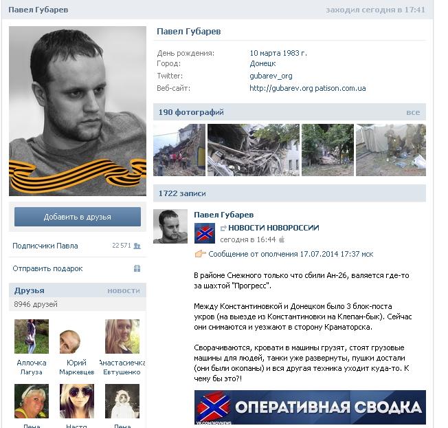 Уже не хвалится. Видно то место, которым думает, не железное.North писав:Стрєлков хвалиться збитим літаком https://vk.com/strelkov_info?w=wall-57424472_7256