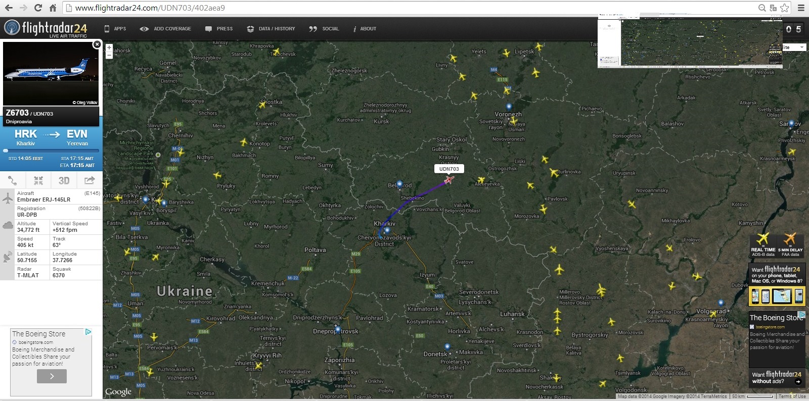 Днепроавиа только что вылетел из Харькова в Ереван и пересек границу.