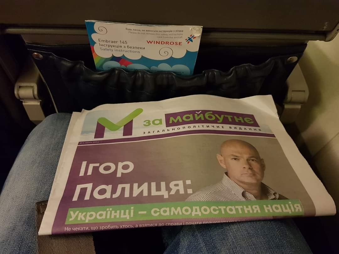 Щоб ніхто не сумнівався, хто кінцевий бенефіціар. На борту Windrose Airlines замість бортового журналу передвиборча газета партії "За майбутнє"