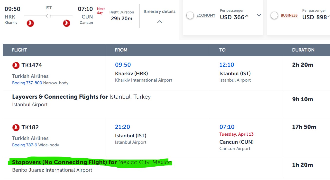 не продают внутренний а так да, выходят в мехико те кто до мехико и садятся те кто до стамбула из Мехико. Крюк знатный да. Но там много таких круговых рейсов у турков