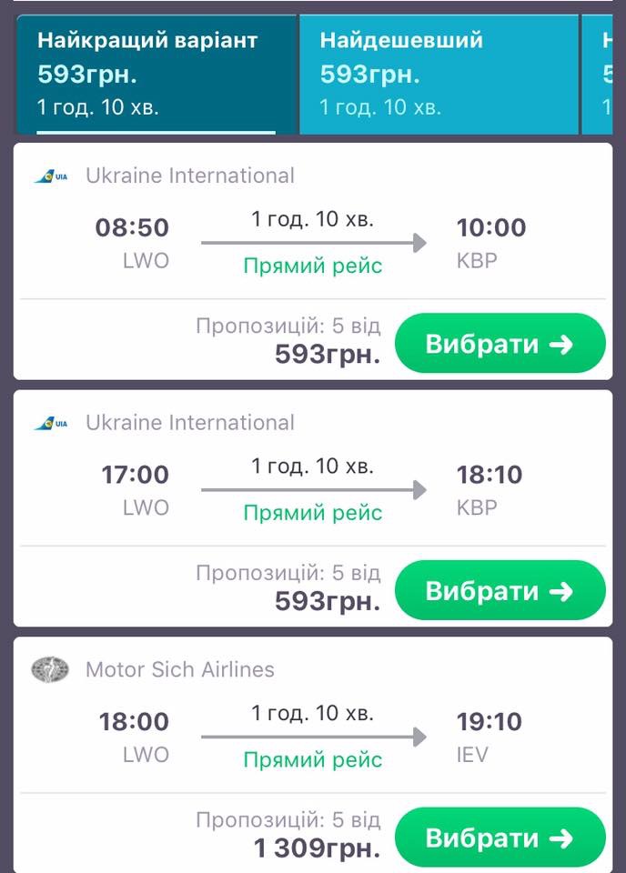 Уточню, что минус 30 далеко не на все рейсы, только на некоторые. Среди тех, которые я смотрел, скидка была только на недорогие билеты (до 1500грн в одну сторону), на более дорогие - не было.