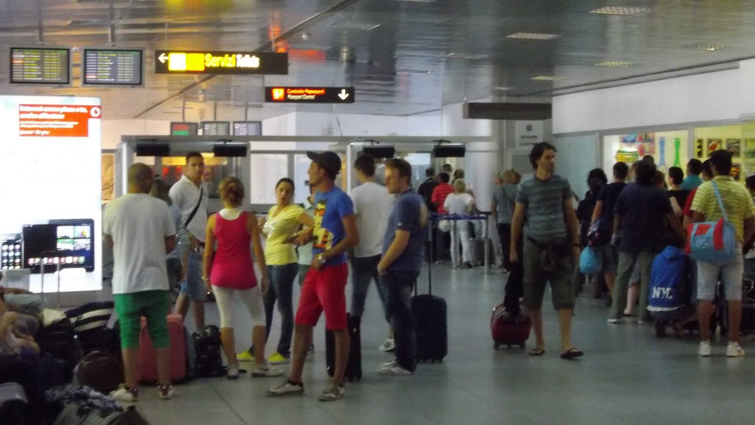 знайшов. але як назло саме ця фотка, з усіх зроблених в Чампіно, вийшла розмазаною... Але табличку passport control можна розгледіти. За нею - дві кабінки прикордонного контролю