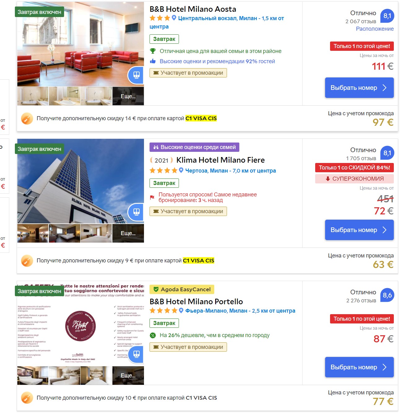 У меня, например, отель стоил в списке 112, с Visa 99.