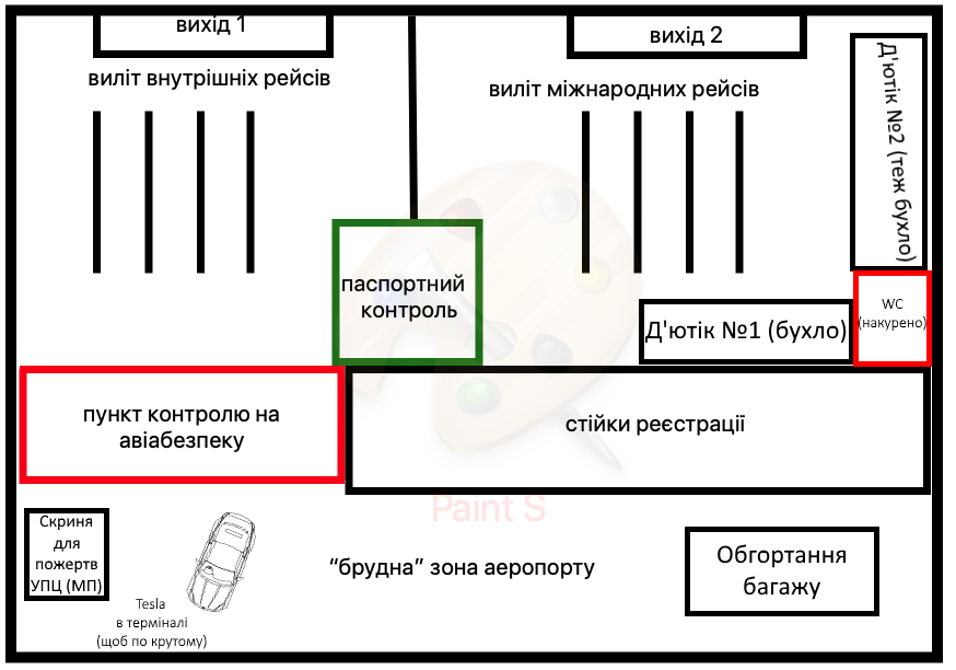 У Львові так можна було б, але чомусь пасажирів, які приходять на не свій контроль безпеки ганяють і слідкують щоб не переходили туди сюди.Кот ученый писав: ↑29 серпня 2019, 16:15 ну вот как-то так я всё это вижу. Всё очень упрощенно и не включает в себя много чего. Насколько соответствует нормативам такая схема?