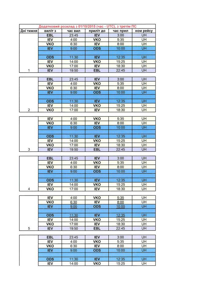 Початок виконання рейсів за конкретними повітряними лініями може відрізнятись від дати дії всього розкладу.