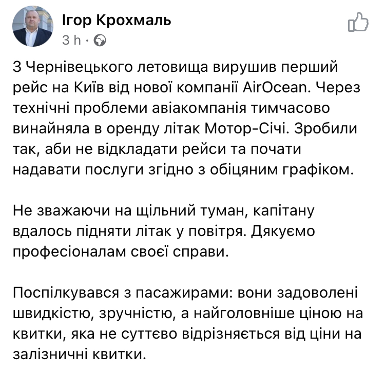 Сезонний сюрприз. Через туман в Запоріжжі сабж сьогодні вилетів із затримкою в майже 5 годин до Києва, а звідти - до Львова. На зворотньому рейсі зі Львова він повернувся в графік.