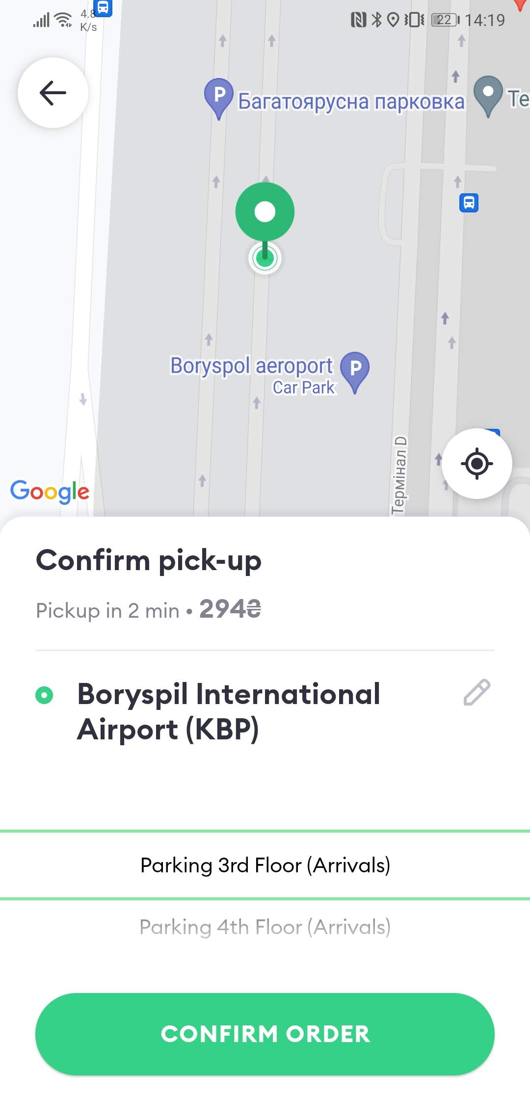 ну картинка из приложения клиента. Я же говорил - то что я выбрал паркинг водители болта не в курсе были. Водитель может видеть другое и подругому. Есть проблемы даже с городскими адресами