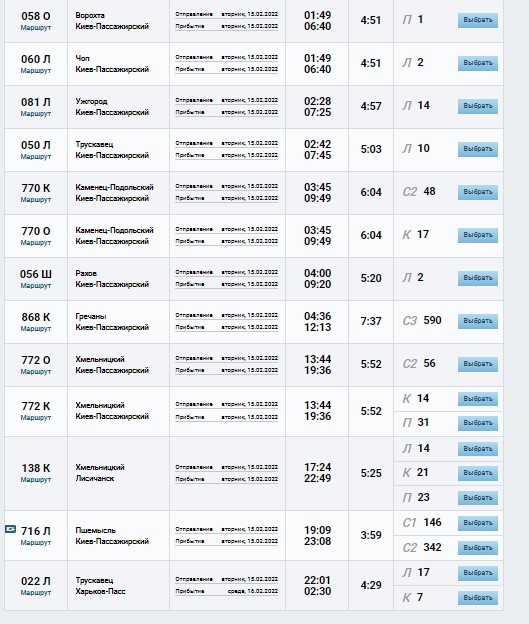 Bagach писав: 08 лютого 2022, 13:57 Из Хмеля в Киев график не шибко удобный.