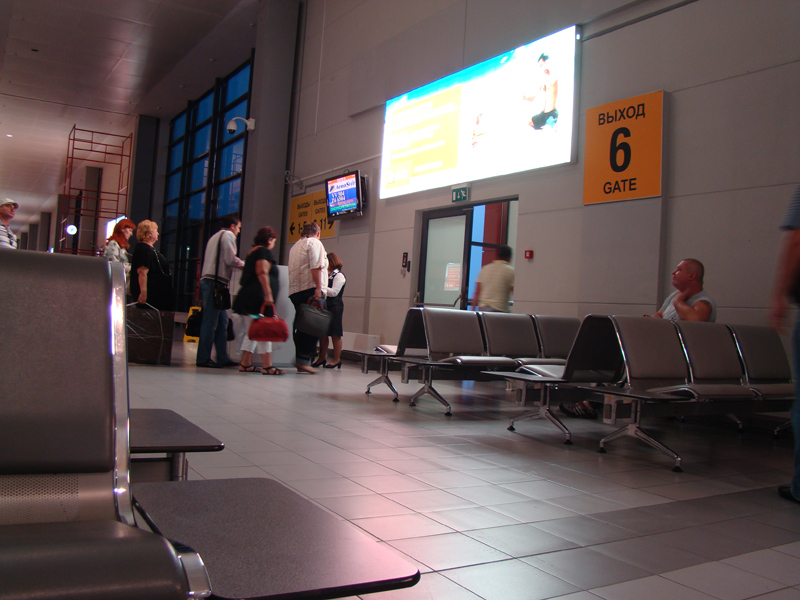 Практически пустой терминал С. Повеселил security check: понятно что разбулся, но дальше чел попросил открыть рюкзак и достать рацию. Дальше мне нужно было вытащить из нее батарейки и положить их в одно место (вместе с крышкой), а рацию немного в другое. Естественно, через 5 минут батарейки были снова на месте. Цирк.
