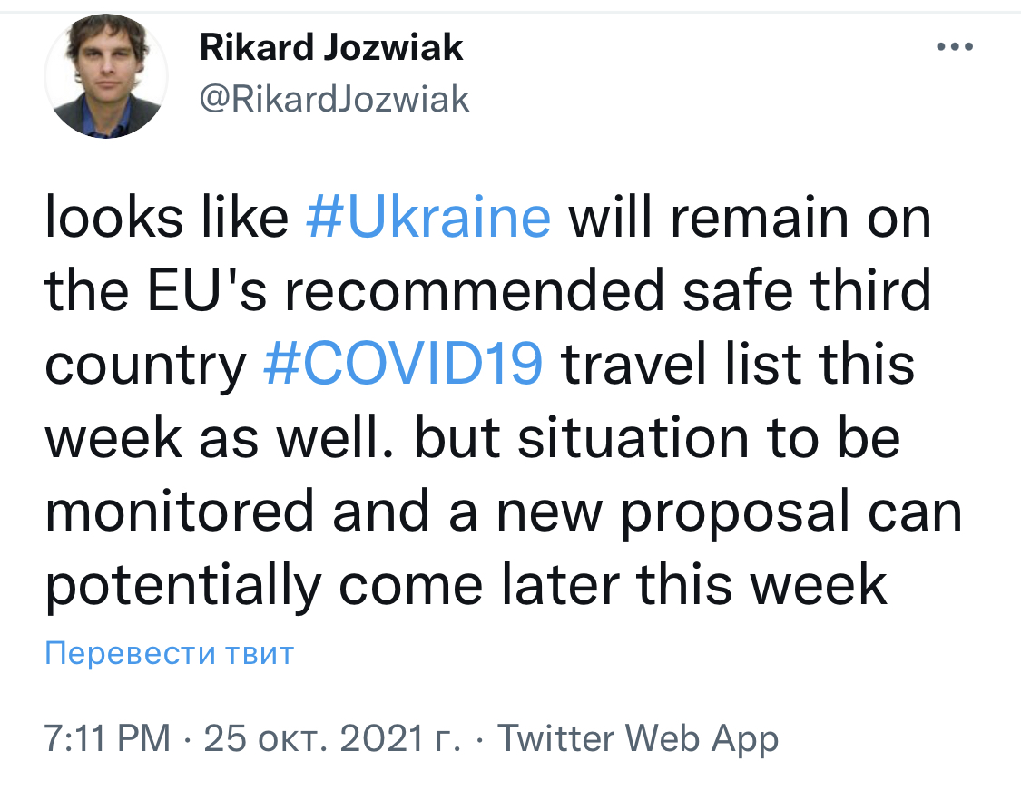 Сам розумієш - на календарі вже майже листопад, а хвороба ж "несезонна"... Цікаво, що минулого тижня туди загримівKrakowite писав: ↑26 жовтня 2021, 09:18 У понеділок вдень Україна була підвищена з Рівня 3, або "високого" ризику для Covid-19, до рівня 4, найвищої категорії ризику CDC