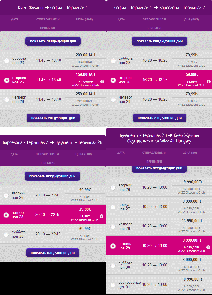 Вот, на скорую руку(сейчас нужно смотреть ноябрь -декабрь), вылет из Киева на 2 дня ножки у моря погреть(обратите внимание, аэропорт нормальной Барселоны, а не Жироны):