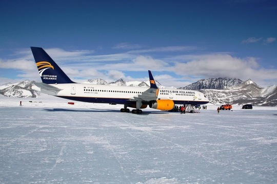 Boeing-757 авиакомпании Loftleidir Icelandic (Icelandair) впервые приземлился на ледник Union в Антарктиде.