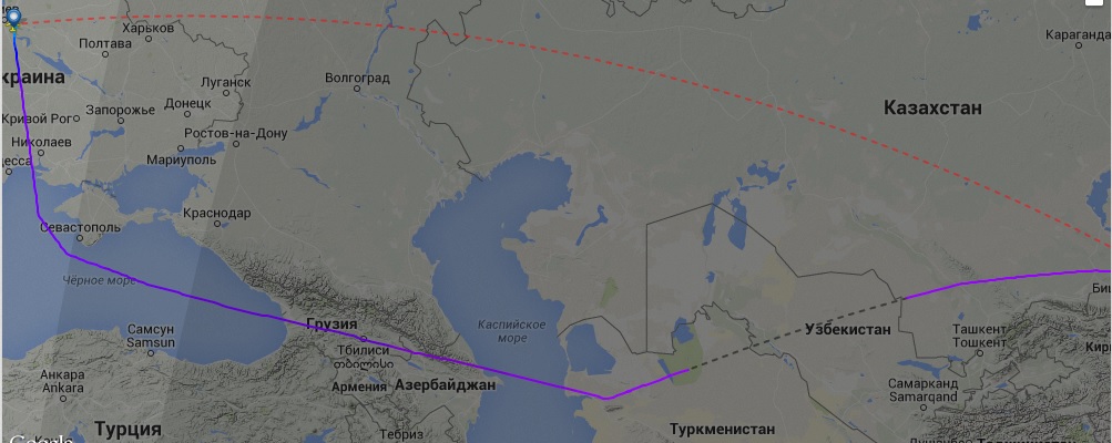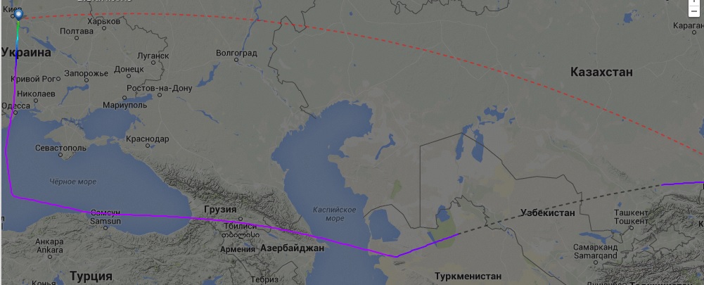 Посмотрел по флайт-радару--не совсем до Босфора, конечно, но крюк виден (в остальном маршрут двух рейсов, практически, идентичен). Ну и мой риторический вопрос к пилоту рейса из Киева в Алматы, где именно мы пролетали над территорией России (как он это заявил, объявляя маршрут), остаётся.Labiann писав:makor писав:Ну я сомневаюсь что они летели медленнее специально. Скорее всего туда были более благоприятные условия полета...