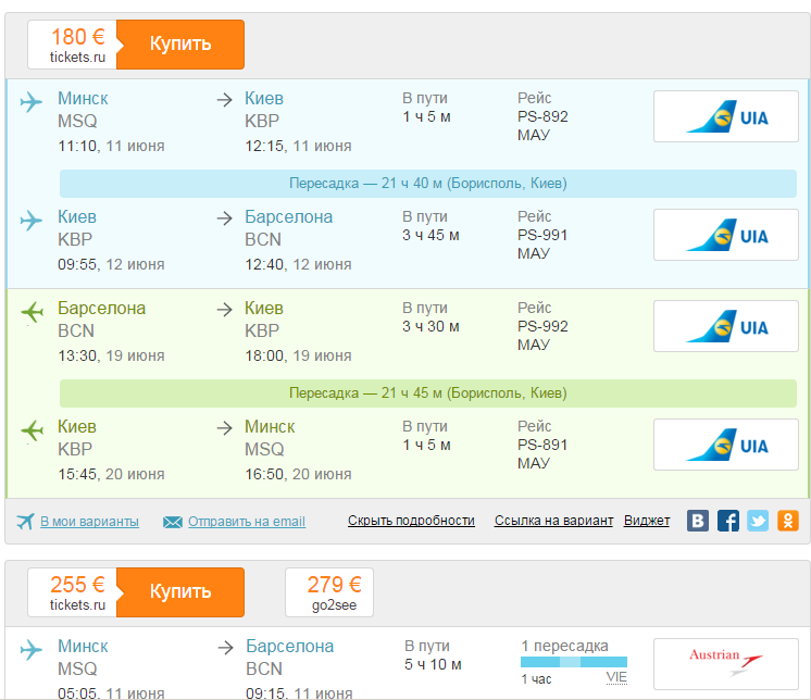 А если разрешаешь использовать рейсы белавии на маршруте Минск - Киев, но стыковки по адекватней, но цена - как у связки австрицев и люфов.