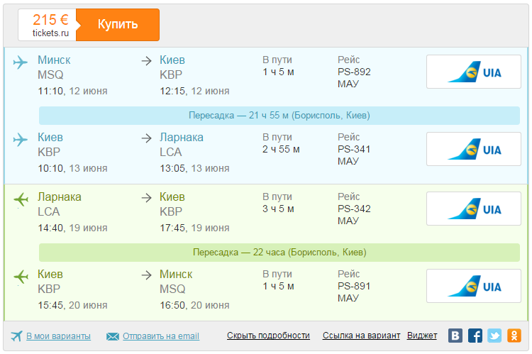 На лето-16 смотрю. Там только такое расписание. На осень есть нормальные стыковки. Все не должны, думаю про отдых на след. лето, мало ли ошибочный какой вкусный тариф проскочит или треугольник Минск-море-туризм-Минск выскачит. Замечаю низкие тарифы МАУ, начинаю изучать маршрутную сеть, но что делать 2 раза по 22 часа в Киеве - загадка. Особенно с учётом непредсказуемости началов майданов.
