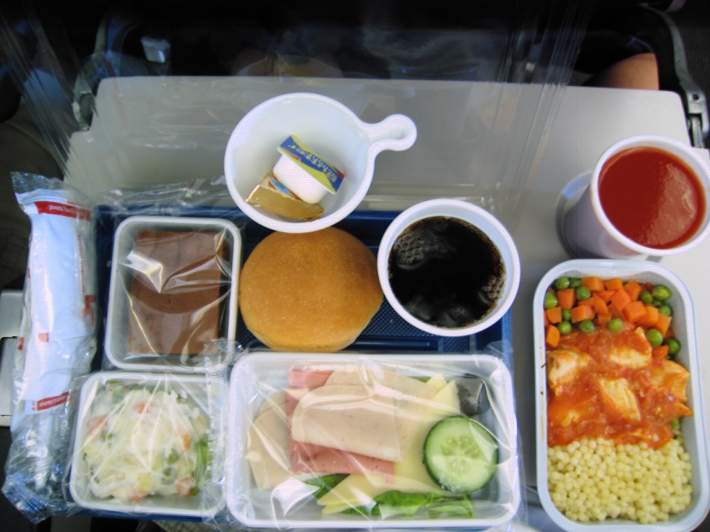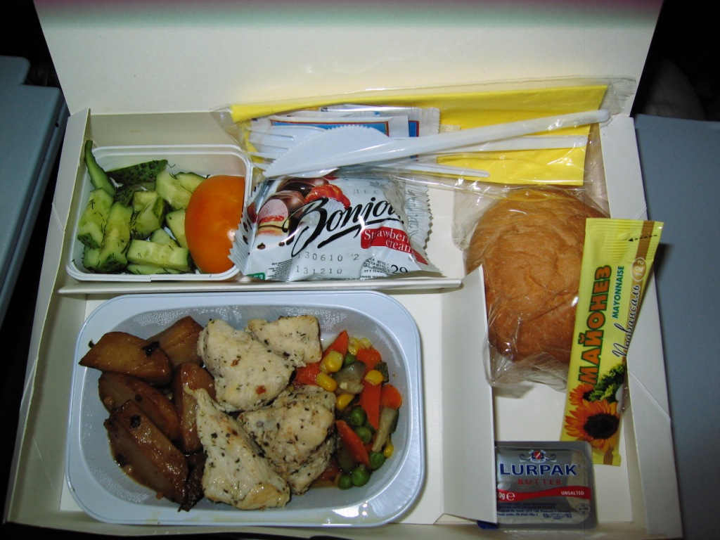 Еда была турецкого кейтеринга, как мне показалось намного лучше чем украинского. Правда горячее было непонятное, курица с шариками толи из теста то ли из растения ))))))) Сок давали по стакану на нос (Коломойский зажал) Зато была еще кола и минеральная вода, чай, кофе. Так не кормят на регулярках. Я был голодным так как 5 часов не ел и не пил, но наелся я капительно