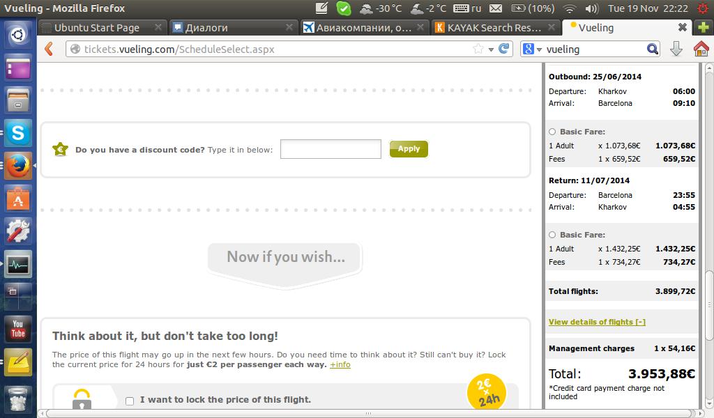 Sentry писав:Для сравнения, из Киева на Канары в июне: КЛМ с 2 пересадками и сутки в пути - 3974грн, 10-12 часов в пути - 4754грн, Вуэлинг с одной пересадкой и 8-9 часов в пути - 4328грн. Так что... за такие деньги уж лучше лететь классиком, хоть мили будут может :)