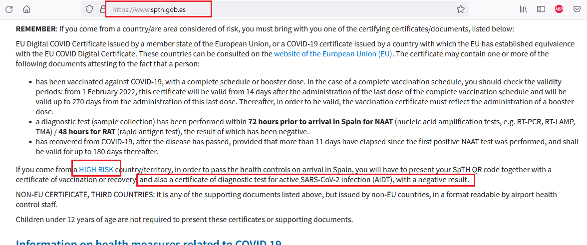 Теперь понятно, получается, что у Испанцев есть страны RISK areas, а есть страны HIGH risk areas, и стран HIGH risk areas у них сейчас в списке нет, только страны RISK areas, для которых достаточно сертификата вакцинации без обязательного теста.