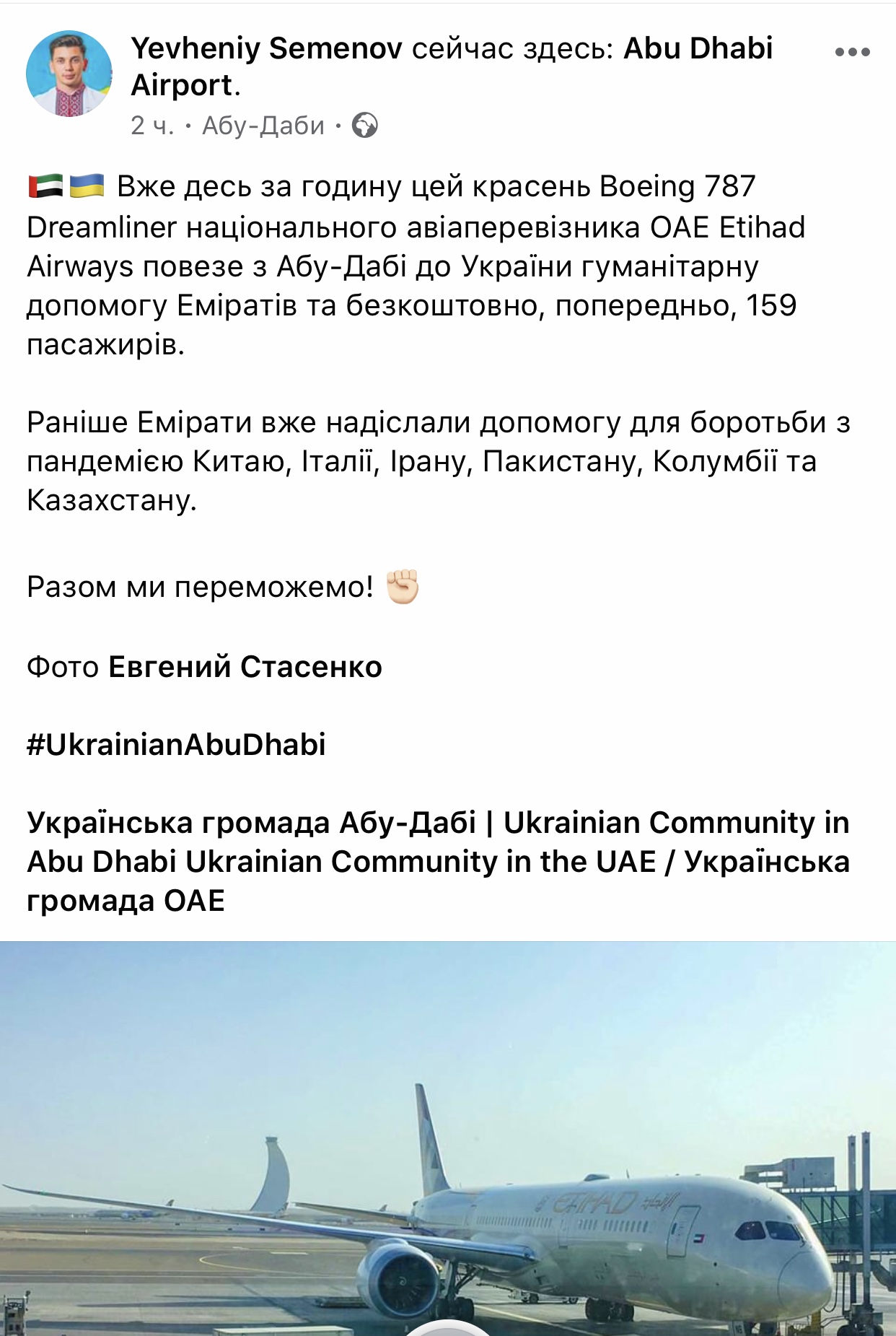 Прилетело по итогу 113 человек. Власть вообще наша ни чего общего не имеет с этим рейсом и попиариться на том какие они молодцы не получится, будут молчать. А рейс получился благодаря инициативе правительства ОАЭ и огромнейшей помощи Украинского посла в ОАЭ. Рейс был бесплатный для каждого пассажира + 10 тонн медицинского оборудования. Каждый человек который попал на рейс, подписал добровольно находится на карантине в отеле за свой счет.