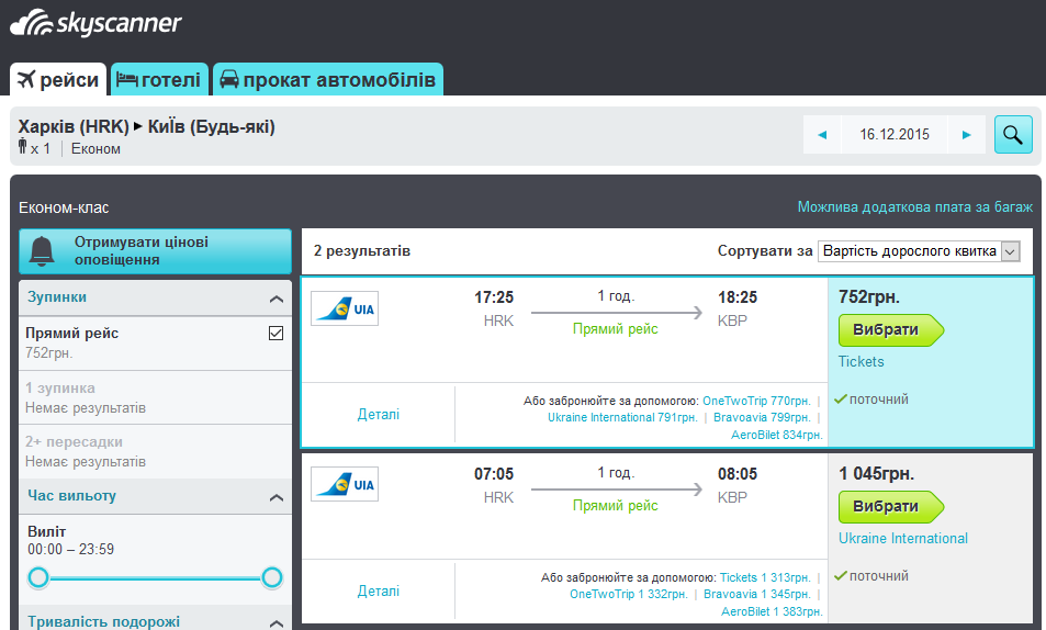 дешевле чем Харьков - Киев...